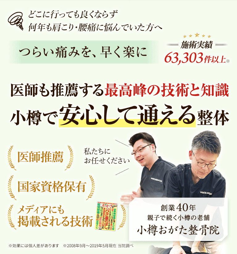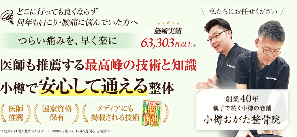 ですが、おがた整骨院さんに一度通ってみて、本当にビックリしました。
